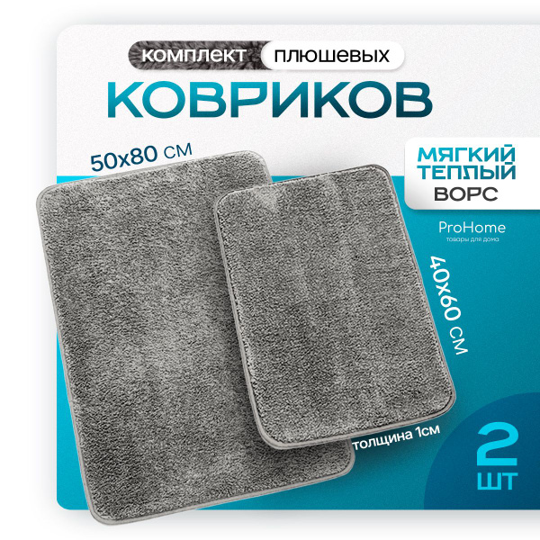 Коврик для ванной и туалета противоскользящий, набор 2 шт: 50х80 и