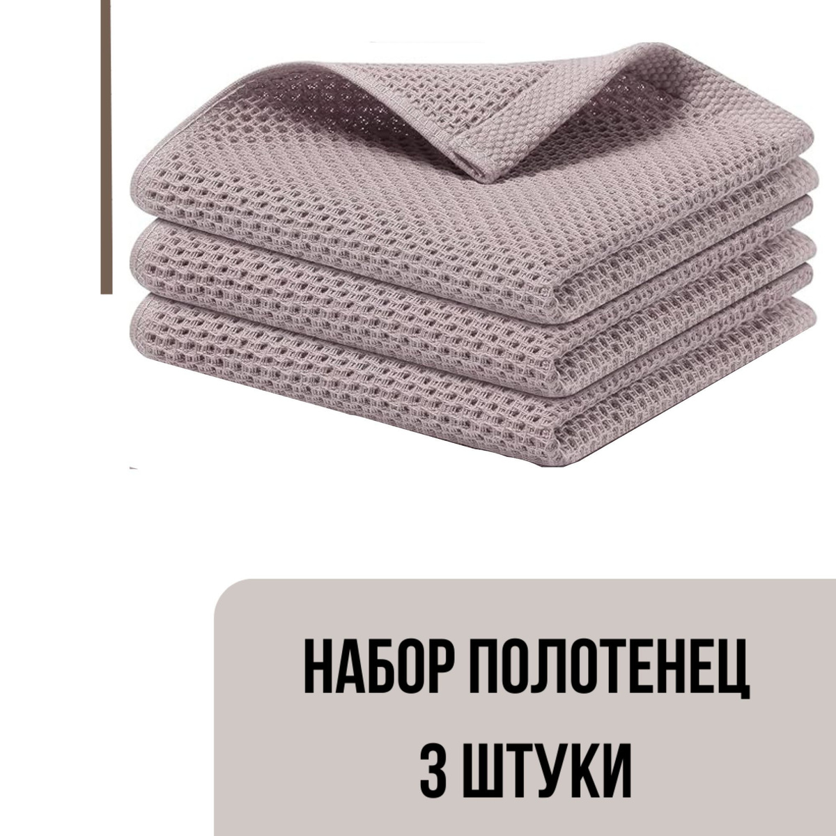 Полотенце кухонное вафельное, набор 3 шт., размер 34*34 см., коричневый