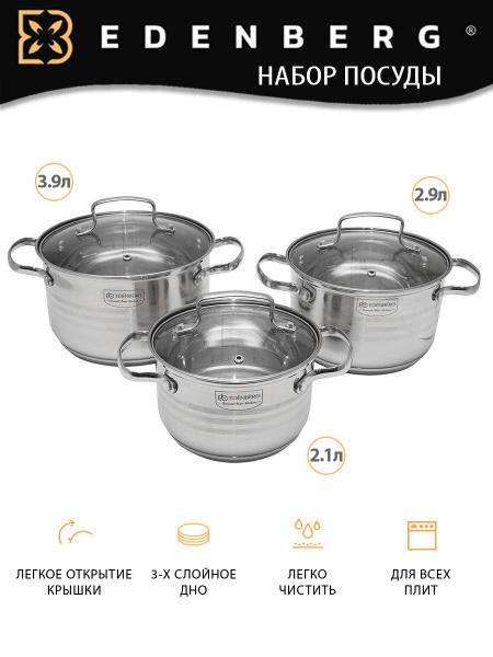Характеристики Набор посуды для приготовления 6 предметов из