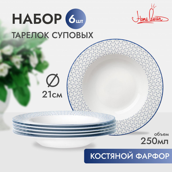Набор тарелок для супа на 6 шт, 21,7 см, сервиз из костяного фарфора
