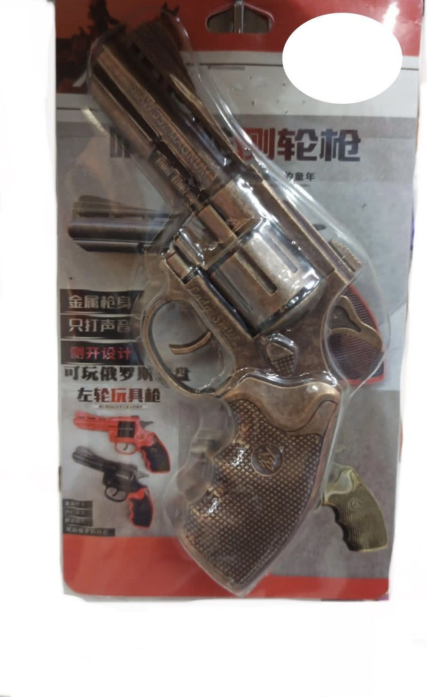 Игрушечный револьвер стреляет пистонами. при выстреле раздается громкий реалистичный звук и есть небольшой дым! На одну зарядку идет кольцо с 8 пистонами. Пистоны в подарок!