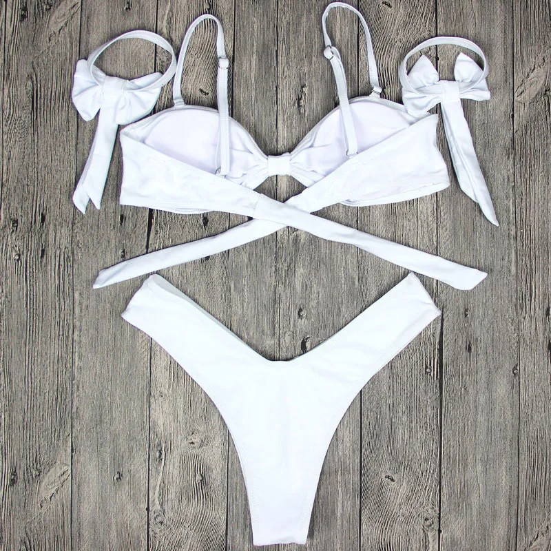 Женский Белый Сексуальный купальник бандо с большим бантом, Мягкий